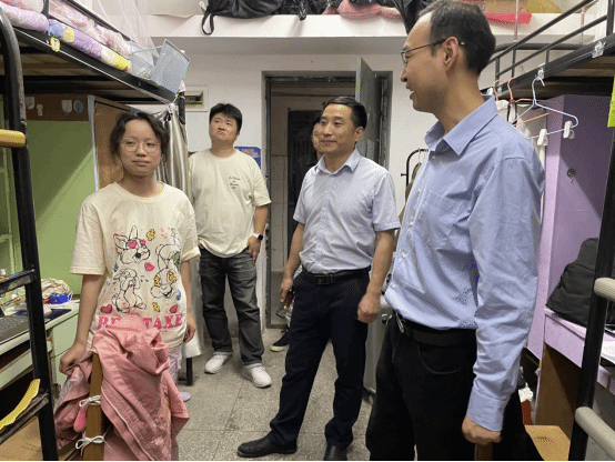 (通讯员 邱程)为深入开展学习贯彻习近平新时代中国特色社会主义思想主题教育,扎实做好调查研究工作,进一步增强员工的安全意识,打造安全、文明、卫生的学习生活环境,6月9日下午,招生与就业工作处处长刘念与教学质量监控与评估中心主任蒋尹华深入泰塑8员工宿舍开展走访调研。