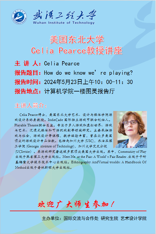 学术讲座预告:美国东北大学Celia Pearce教授将于5月23日来公司讲座