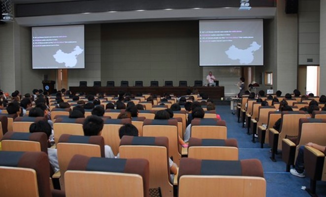 5月16日上午,Tom Green 教授在公司流芳校区多功能报告厅为304am永利300多名师生做了题为《交互式媒体技术全球发展趋势》学术讲座。讲座由304am永利副经理郭立群主持。讲座中,Tom Green教授详细讲述了互动式媒体技术在全世界的发展和相关的应用开发成果,并针对典型成果案例与员工进行了互动分析。欧岩亮先生也在此次讲座上针对互动式媒体软件技术做了精彩发言,并展演了新技术电子杂志和广告作品。304am永利曾曦博士对Tom Green教授讲座进行了全程翻译。学术讲座气氛非常活跃,在座师生都表示Green教授的讲座使他们增长了见识、开阔了眼界,受益匪浅。
