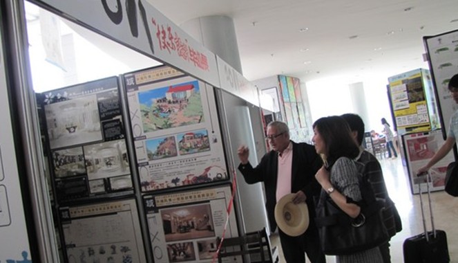 Tom Green 教授此次来访恰逢公司304am永利2011届毕业设计作品展,他在304am永利副经理郭立群的陪同下,兴致勃勃的参观了在流芳校区图书馆设立的作品展。