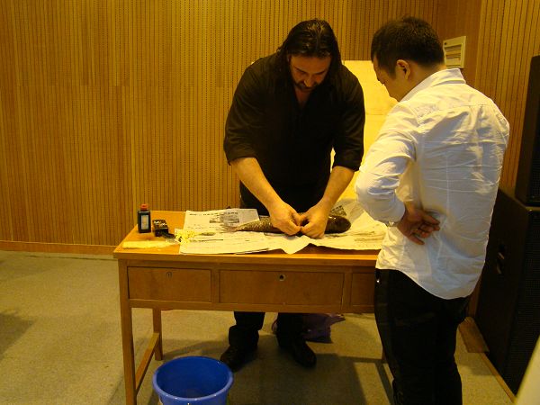 为了让同学们了解为何要进行艺术创作、以及怎样去创作,约利佐·米开尼罗先生还进行了即兴创作,用西方油画的手法在中国传统宣纸上画鱼,这种融合东方绘画元素的画法立即引起了员工们的极大的兴趣。