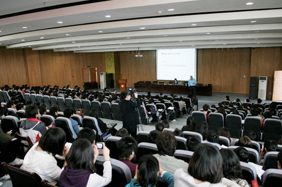 7号下午,汤姆教授在流芳校区图书馆报告厅举行了“多媒体设计的全球趋势”学术讲座,在这个讲座中汤姆教授介绍了五个在互动媒体设计领域全球性的发展趋势,学术讲座气氛活跃,座无虚席。