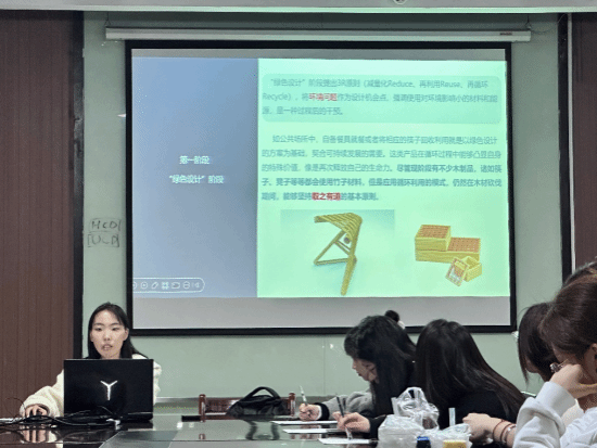 邵秋月同学将可持续理念分为三个阶段:“绿色设计”阶段、“生态设计”阶段、“产品服务系统设计”阶段。以产品的设计、制造、运输、销售、使用、维修及回收这一完整生命周期为主要对象,将产品与服务相结合来满足用户的需求,提高产品的使用效率,减少资源消耗和环境污染,以改变人们生活质量为目标的一种战略性的设计理念。